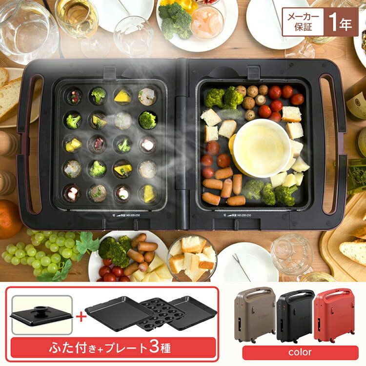 ■商品サイズ(cm)使用時:幅約65×奥行約33.6×高さ約9折り畳み時:幅約15.9×奥行約33.6×高さ約34.3■質量約5.4kg■電源AC100V(50/60Hz共用)■定格消費電力1300W■ヒーター650W×2■温度設定切、保温、約140?約250℃■電源コード長約1.8m■セット内容本体、ふた、平面プレート、ディンプルプレート、たこ焼きプレート■カラーブラック、ブラウン、レッド話題のホットプレートがさらに便利に。