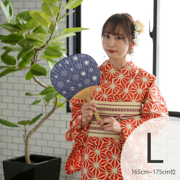 【30%OFF】浴衣 セット レディース 3点セット(浴衣/帯/下駄)Lサイズ 大きいサイズ トールサイズ 165cm〜175cm 麻の葉 ベージュ 赤 オレンジ 綿麻 麻混 特選 リネン 先染めベージュ 浴衣セット ゆかた 女性 レディース レトロモダン 大正ロマン 古典柄 モダン