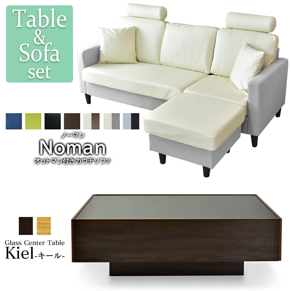 カウチソファ ローテーブル ダイニング セット 3人掛け ハイバック コーナーソファ 肘付き ヘッドレスト オットマン ガラステーブル おしゃれ ノーマン キール