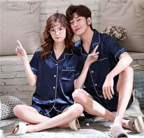 商品名ペア パジャマ 合成シルク 前開き 半袖 カップル パジャマ カップルペアルック 夏 レディース ルームウェア 商品説明部屋着として、コンビニなどちょっとした外出もできて便利です。