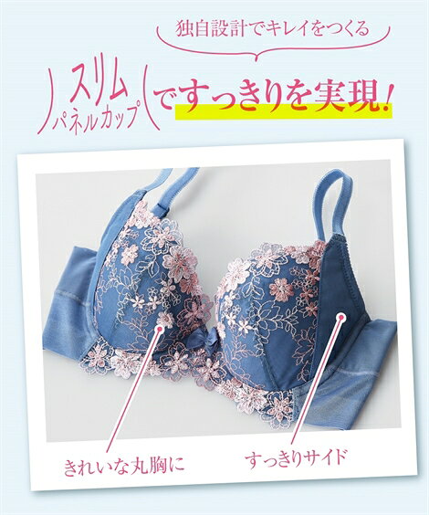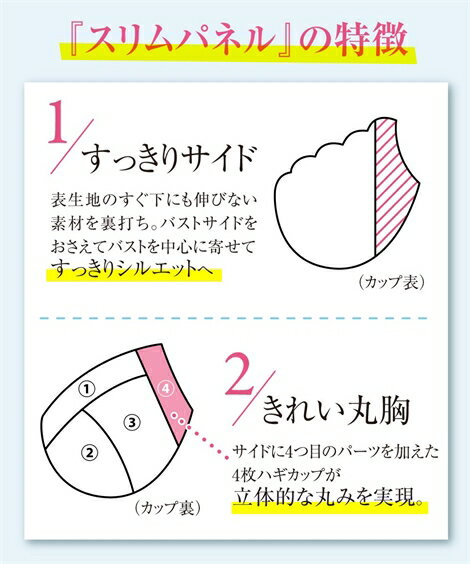 バストサイドをおさえ、立体的な丸みのあるキレイなバストシルエットを実現するブラ。