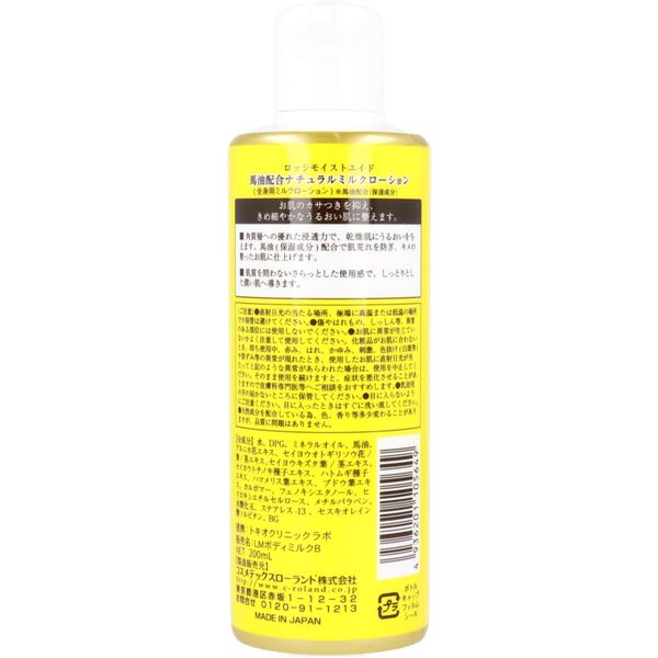 ロッシモイストエイド 馬油配合 ナチュラルミルクローション 全身用ミルクローション 200mLカサカサ乾燥肌対策に!お肌のカサつきを抑え、きめ細やかなうるおい肌に整えます。