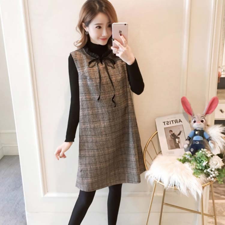 二点セット レディース ジャンパースカート ニットトップス チェック柄 ワンピース ジャンパースカート ノースリーブ ミディアムワンピース 膝上丈ワンピース ハイネック 長袖 重ね着 お洒落 スタイリッシュ こなれ感 大人っぽい 春秋 冬新作送料無料